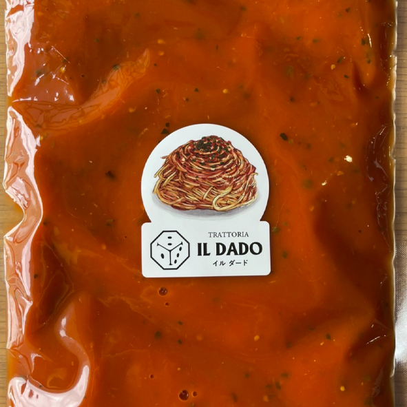 IL DADOさまオリジナルトマトソースのパッケージデザインを作成しました。料理人時代の先輩が独立してお声をかけてもらえました。